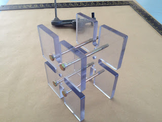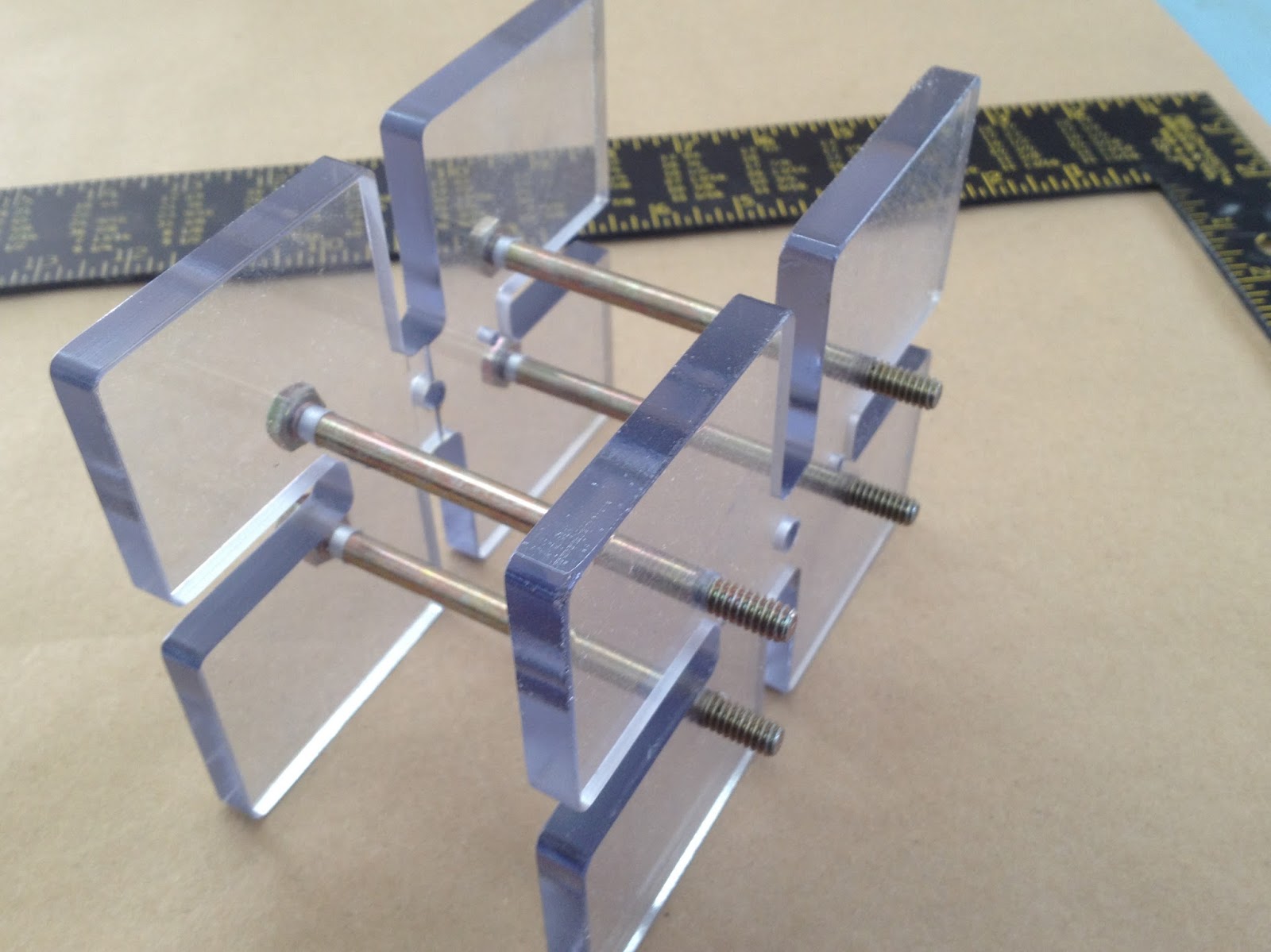 I cut the primary parts from a piece of .375 lexan. all cut on a cnc machine so the location of the holes